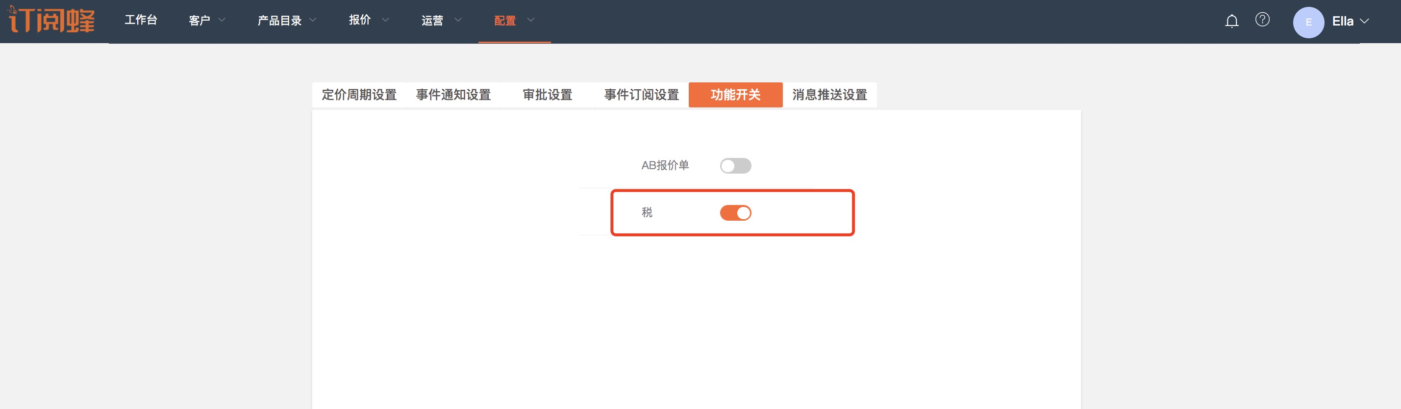 只有开启税的功能开关,才能设置税率和关联产品。