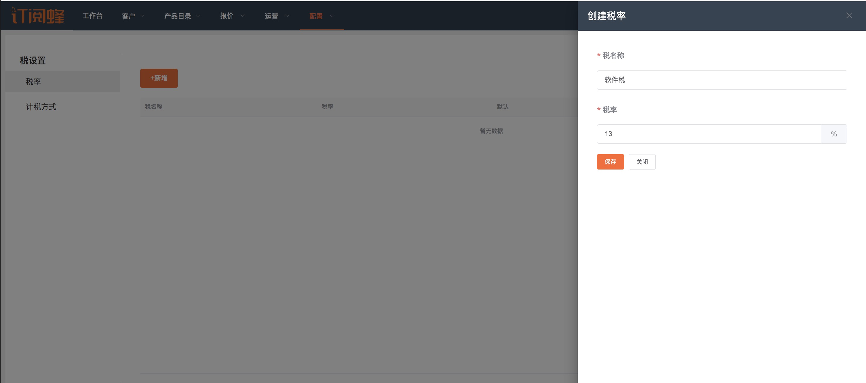 为企业的产品或者服务创建税率,税名称和税率为必填项。