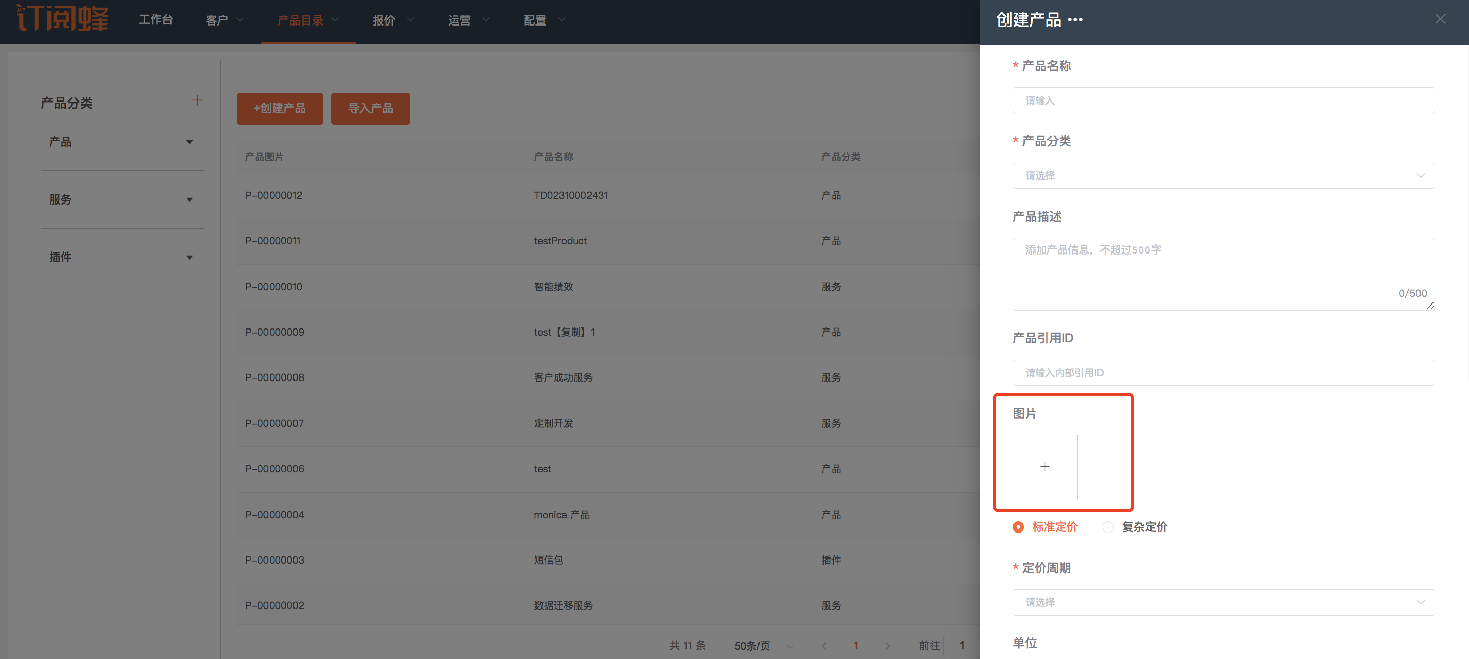 添加自定义字段并生效后,创建产品/定价计划/产品明细时可访问自定义字段