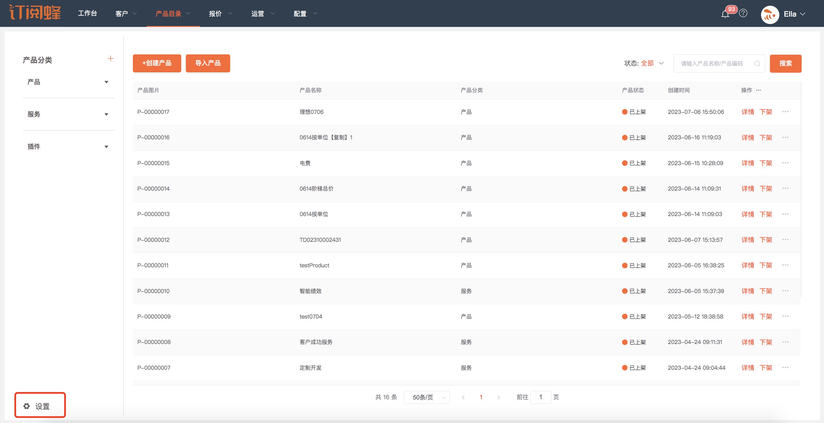 产品设置