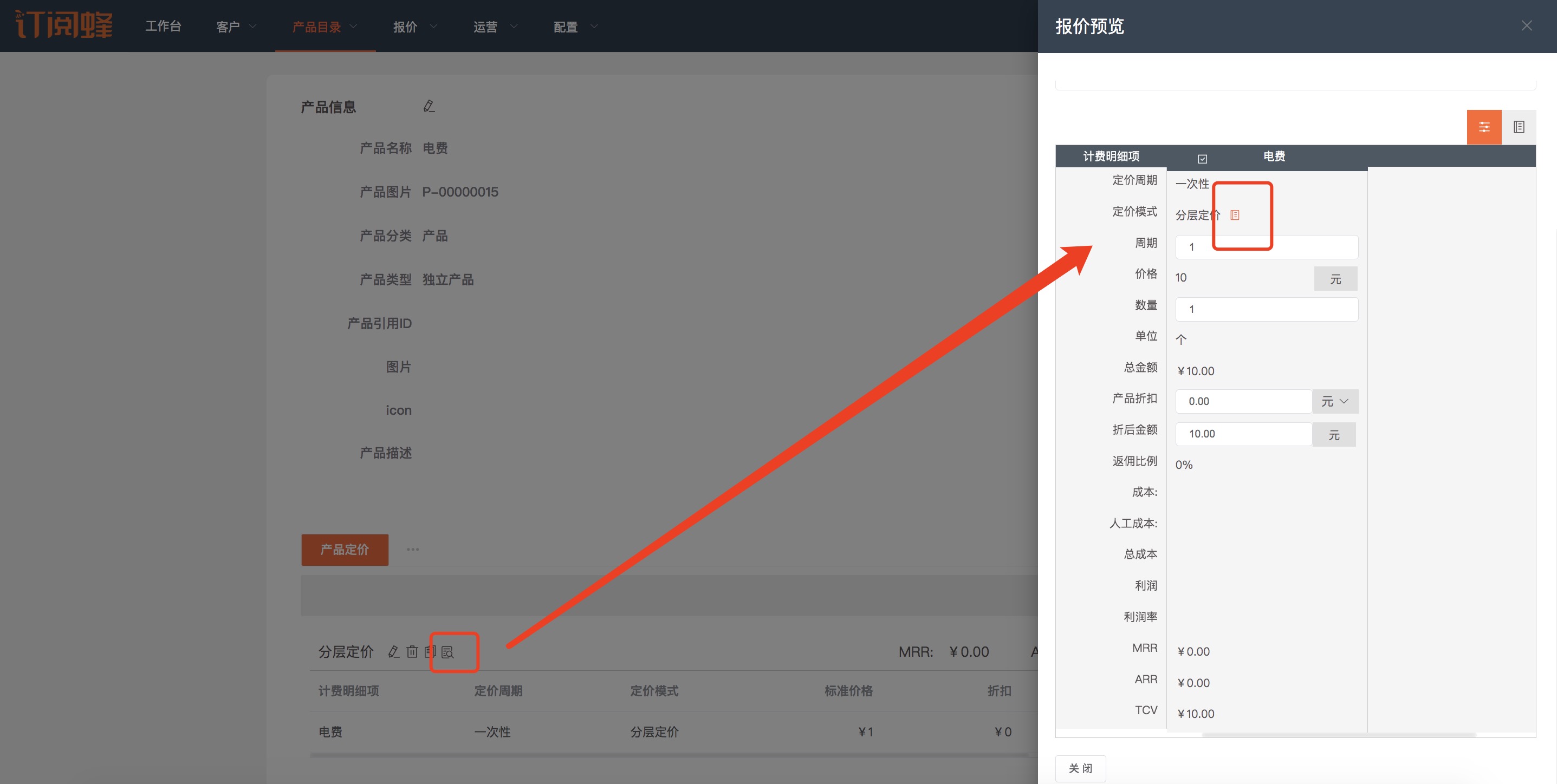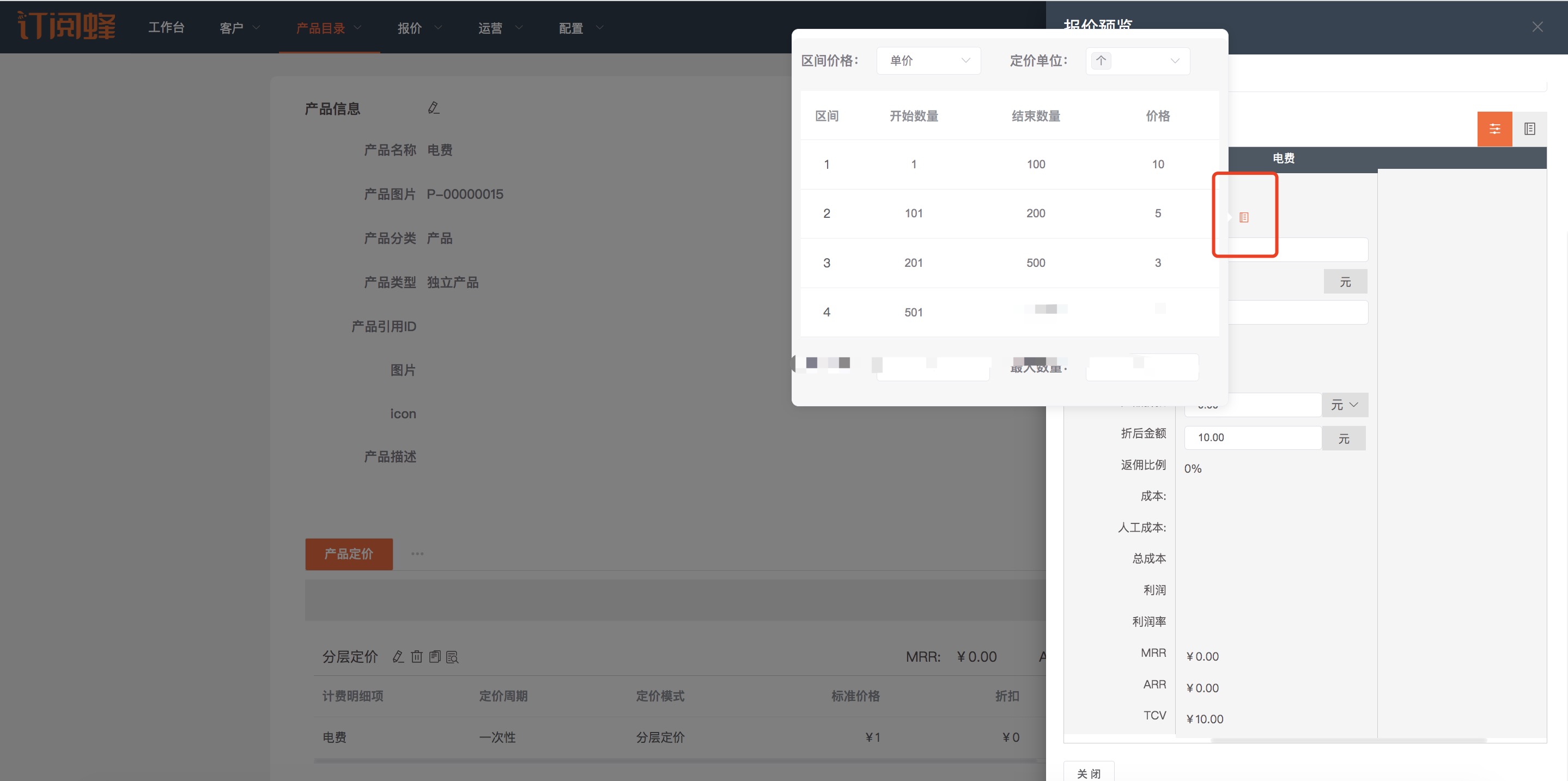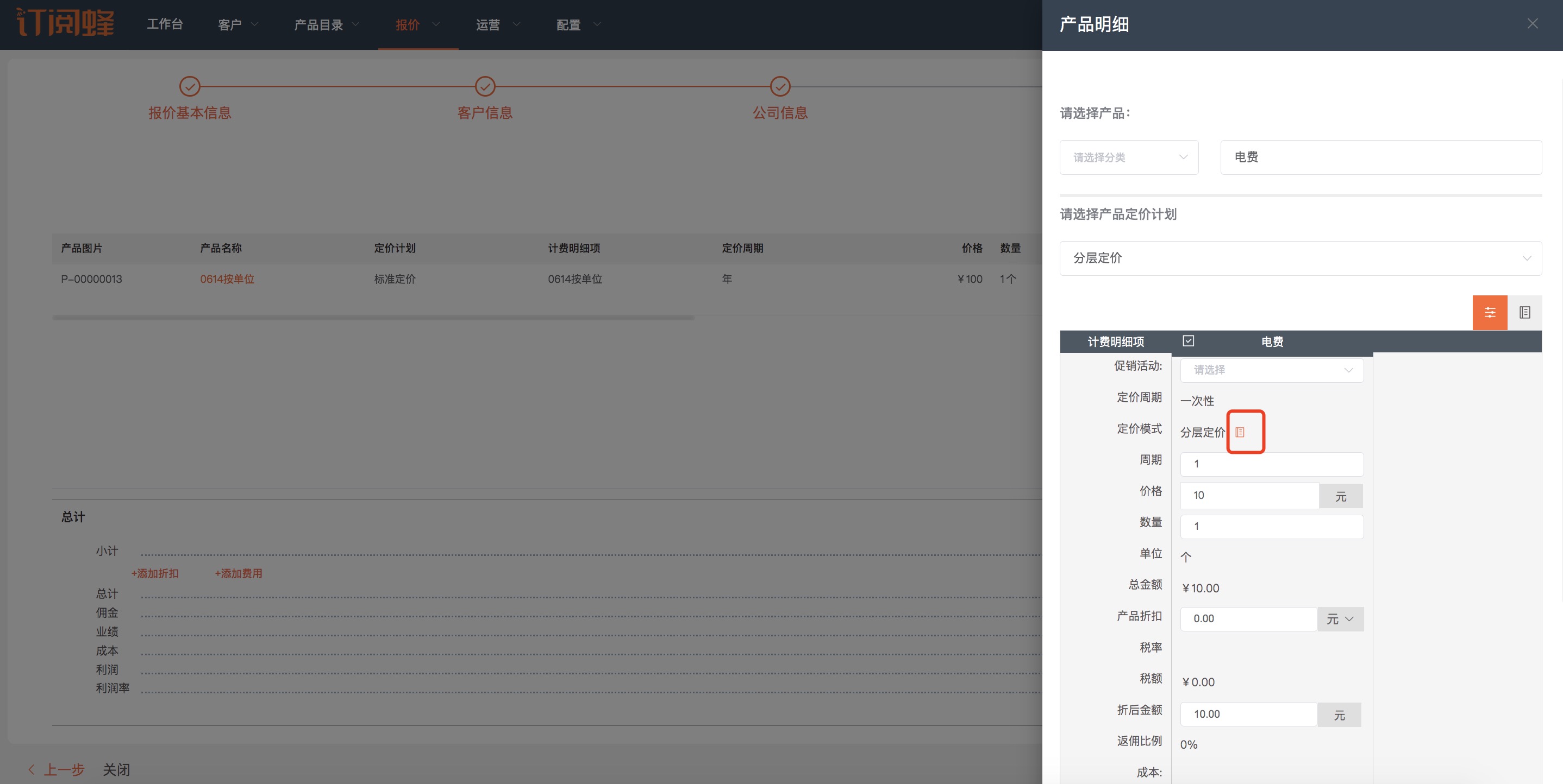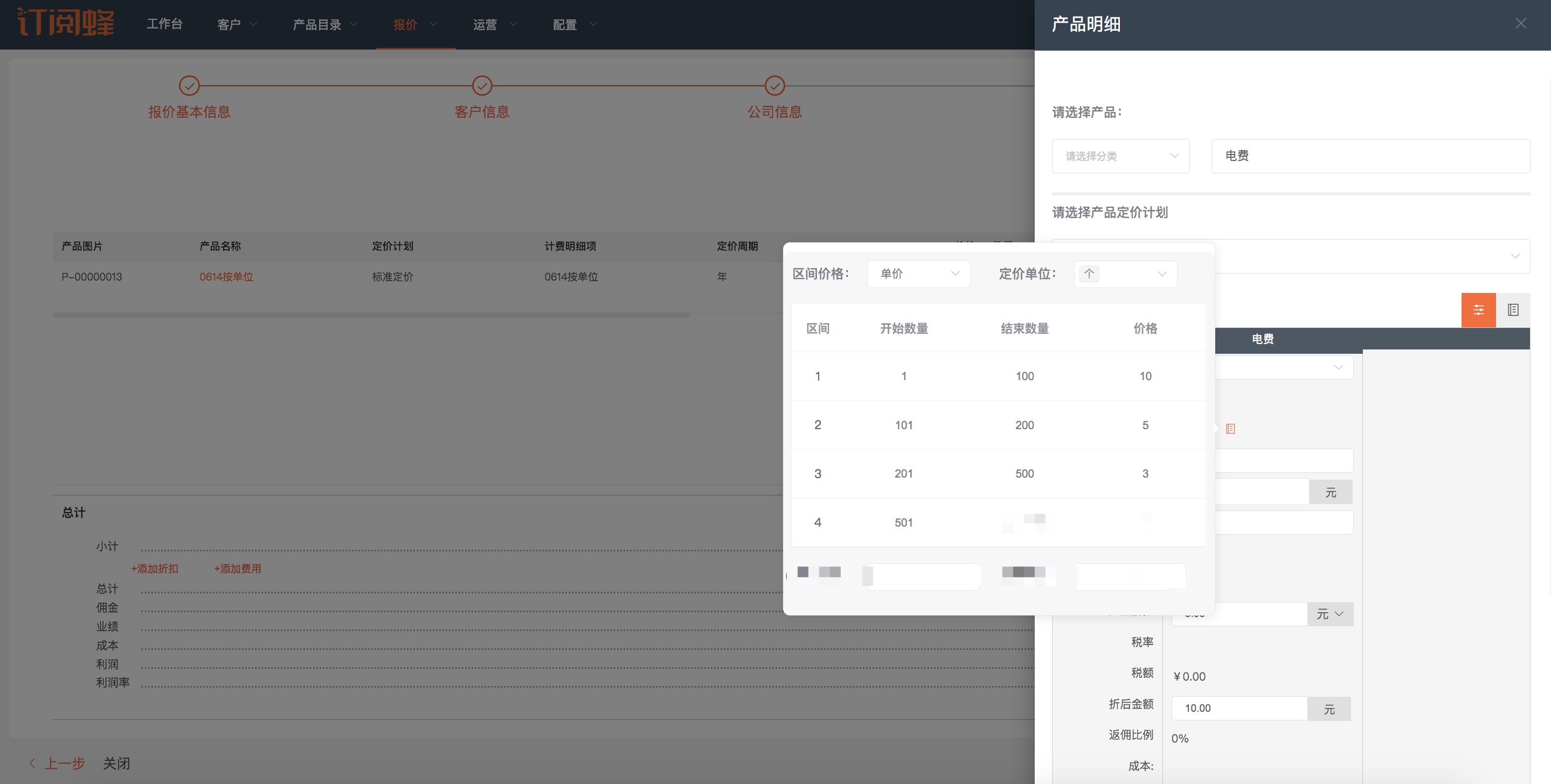 当设置为“显示阶梯/分层价格信息”时,产品报价预览和报价时则可点击查看详细价格信息。