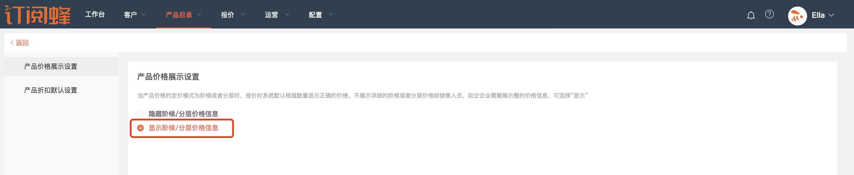 系统默认在报价或者预览时不显示详细的价格信息,管理员可根据企业的管理策略偏好来选择“隐藏”或者“显示”