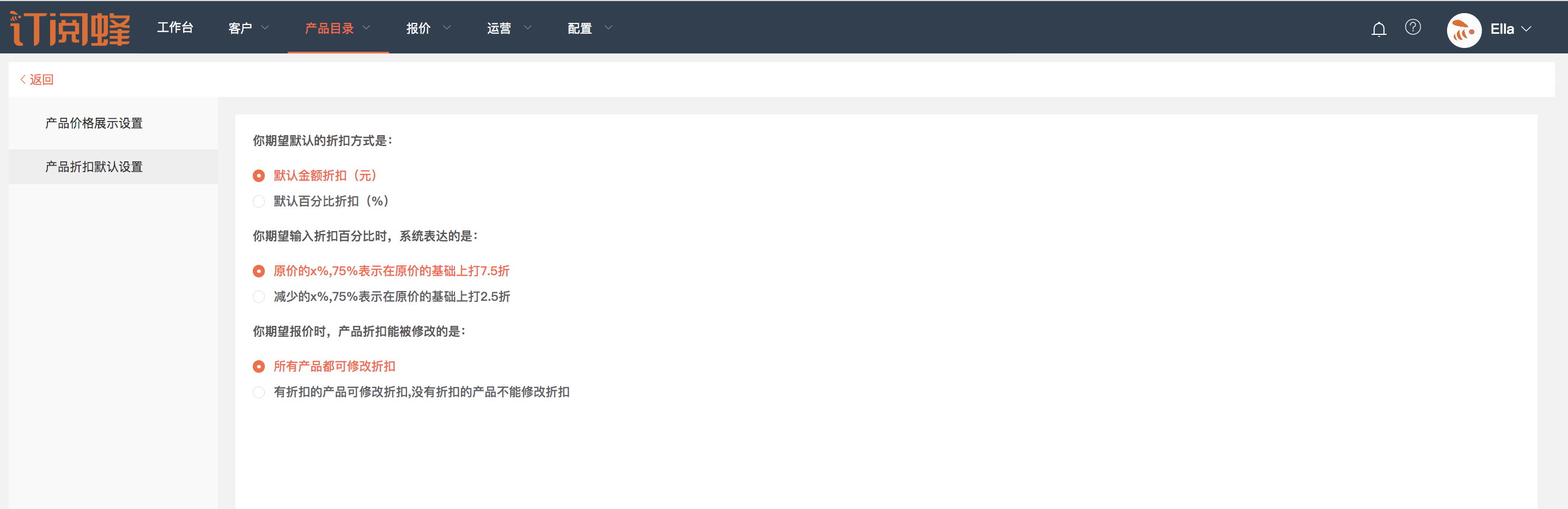 企业可根据自身的业务需求设置默认折扣信息