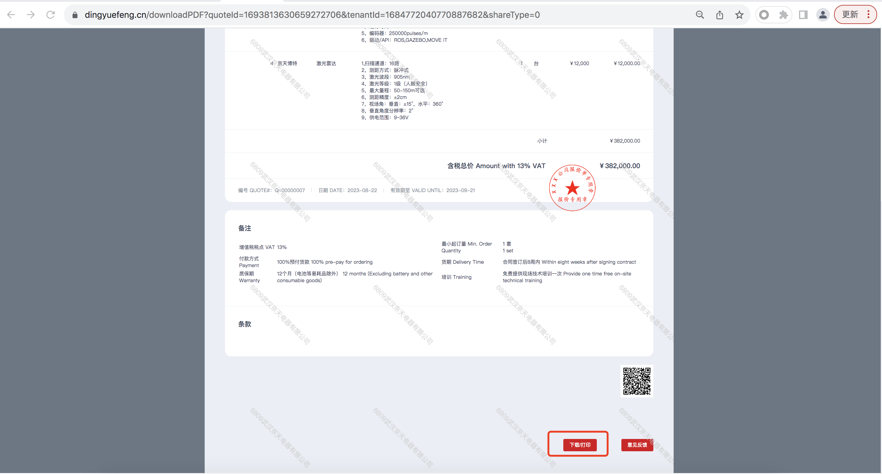 当客户预览在线报价单时,客户可实时对报价单进行在线反馈
