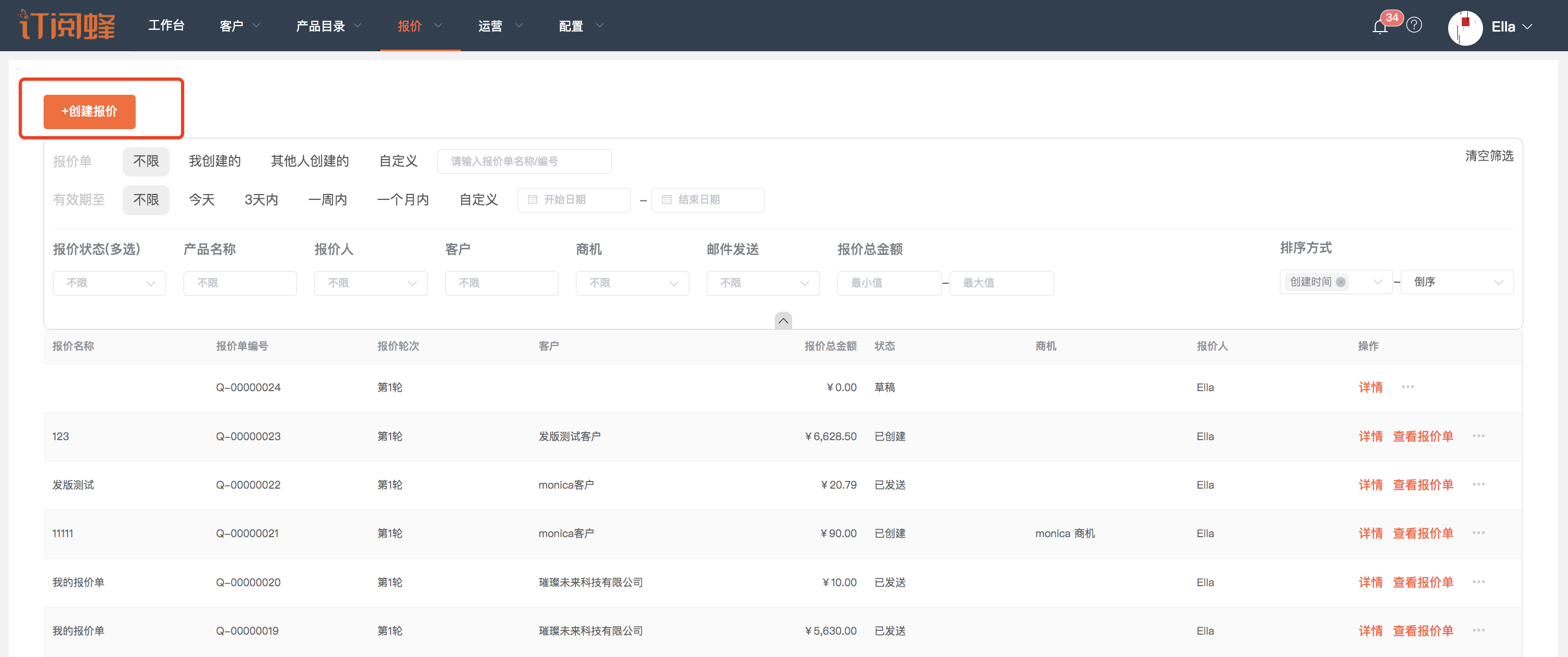 产品报价,属于常用功能,支持在桌面快捷创建,也支持在报价管理新建创建;