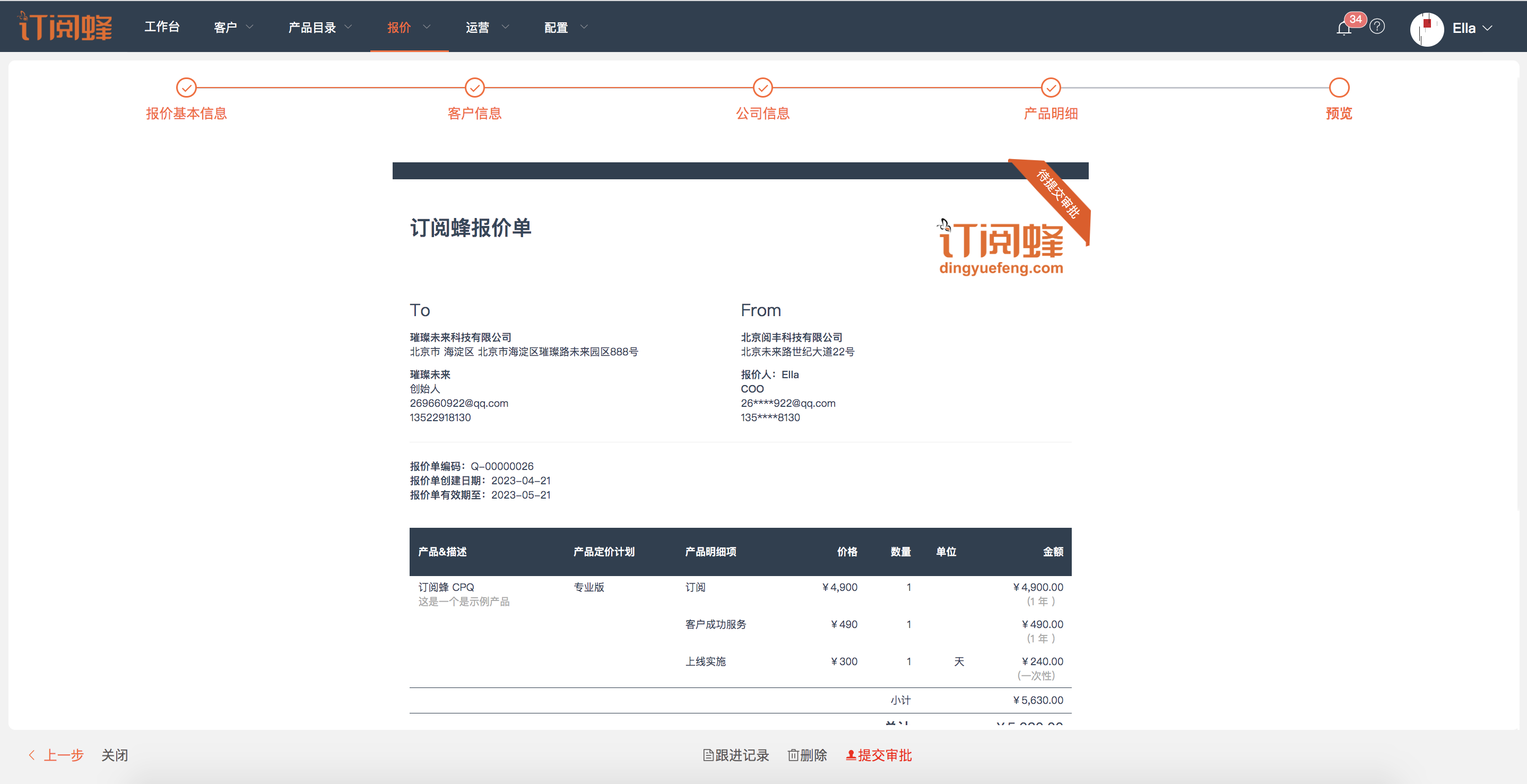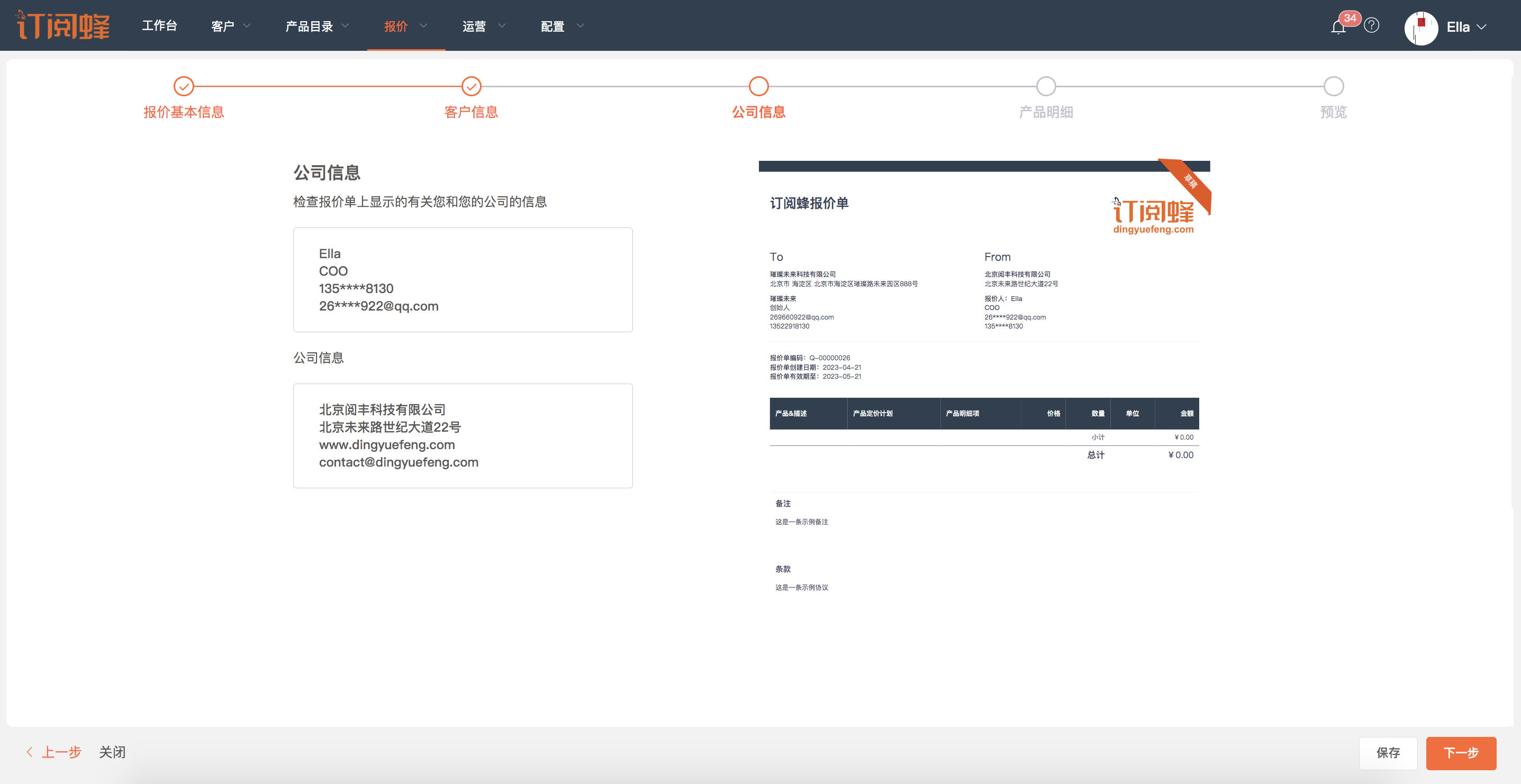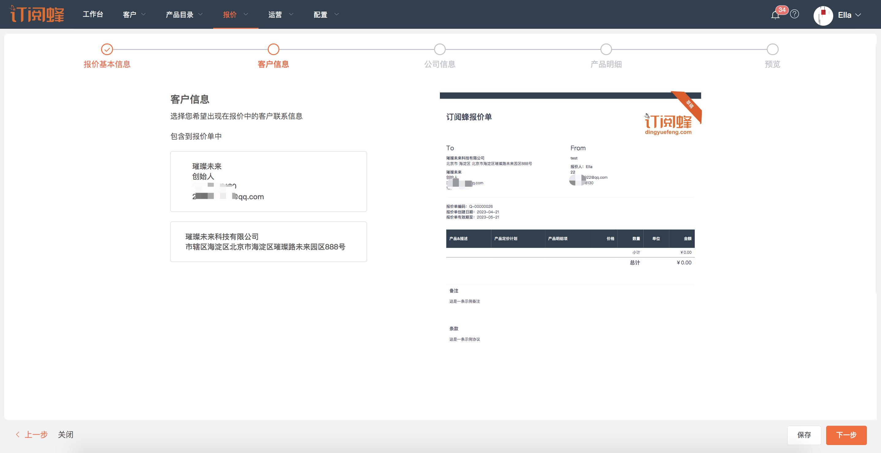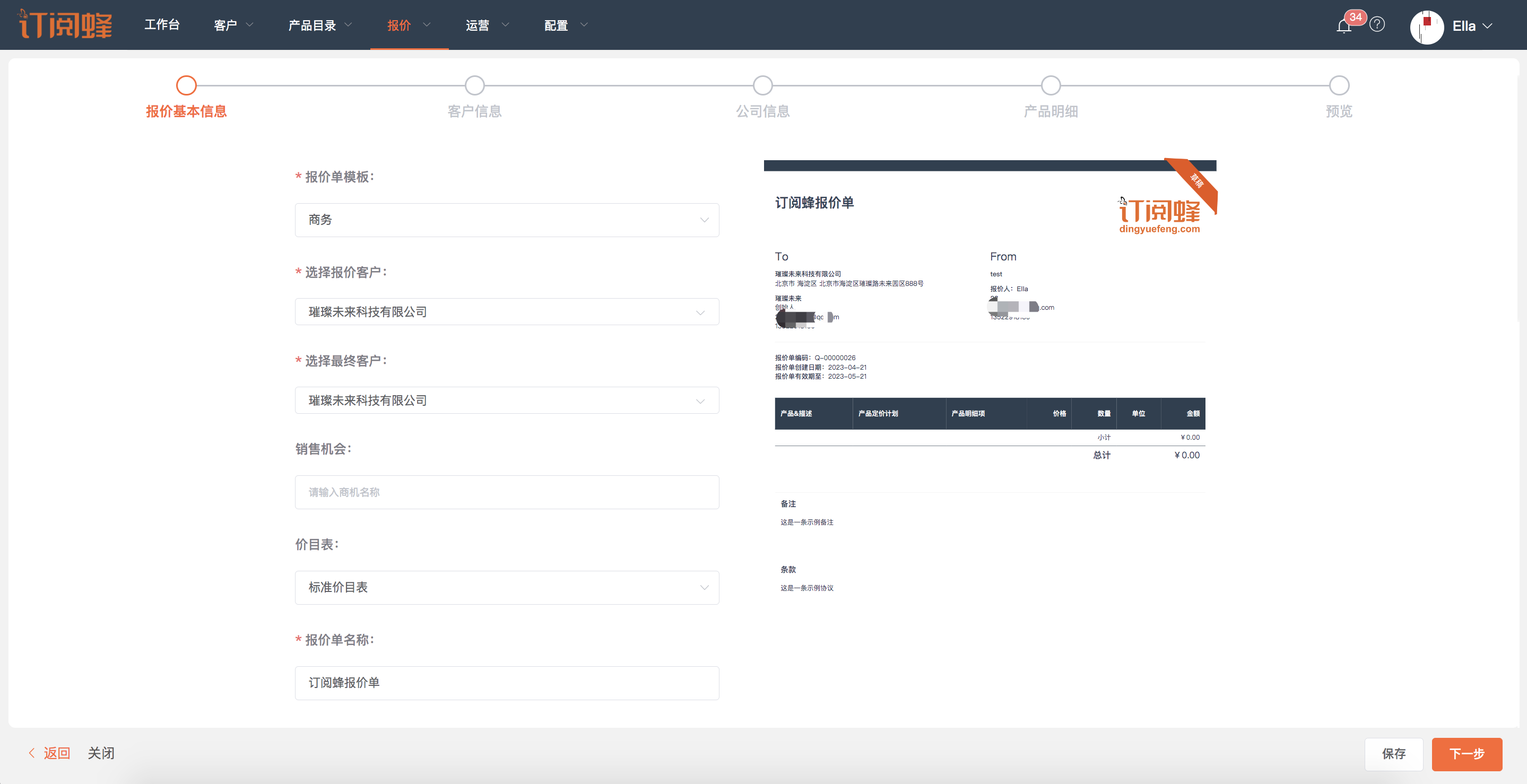 步骤一 报价基本信息维护 (选择模版,客户,输入报价单基本信息)