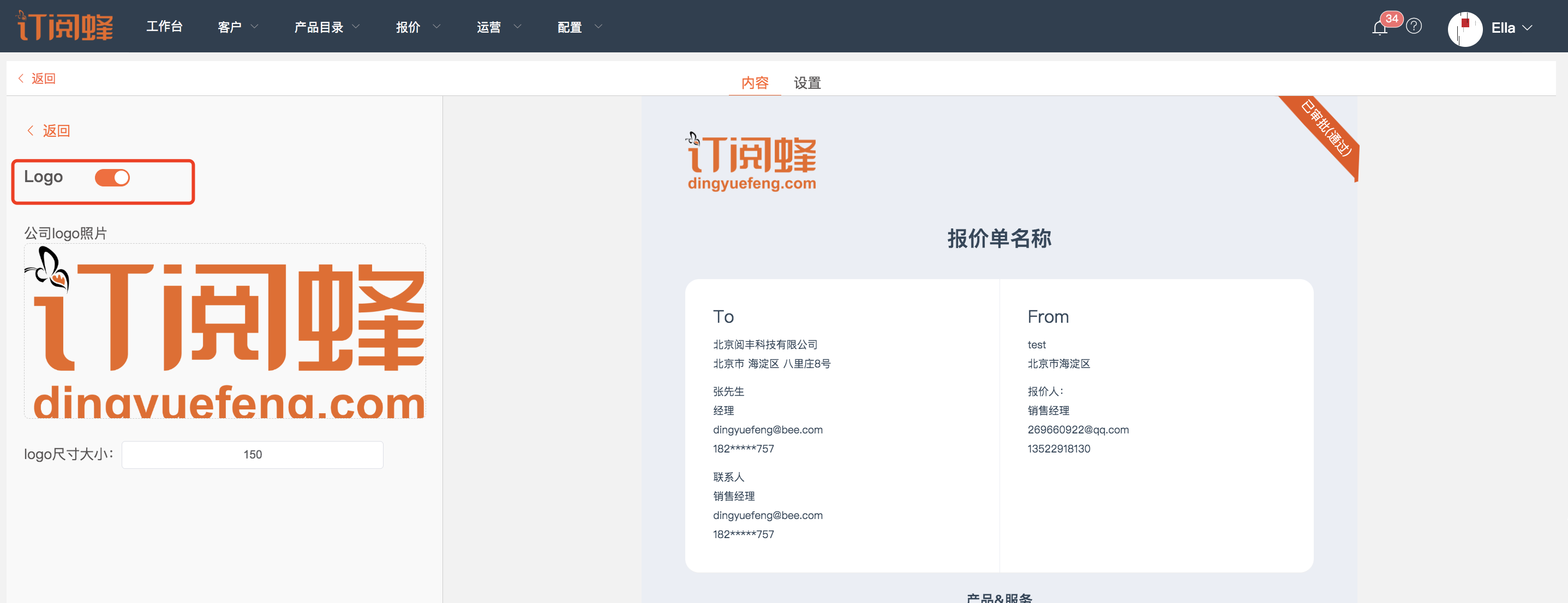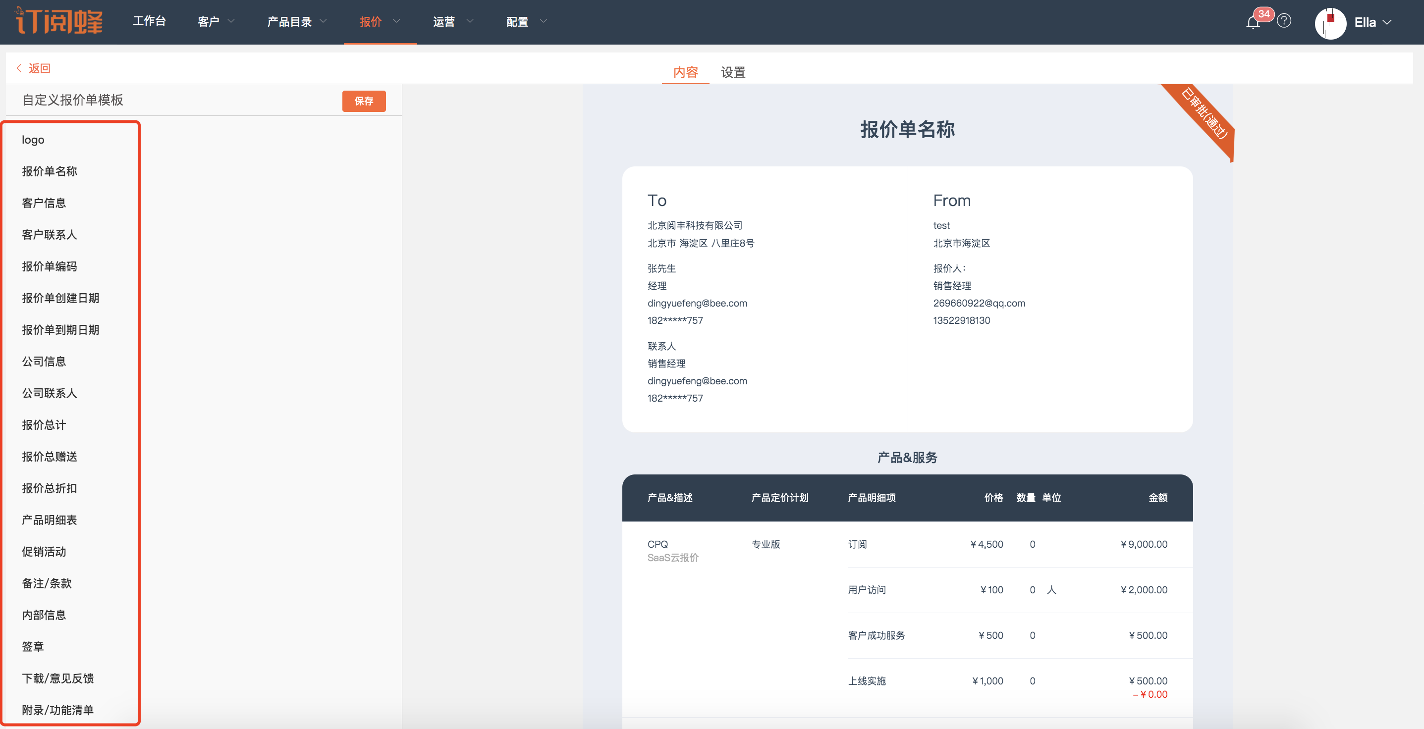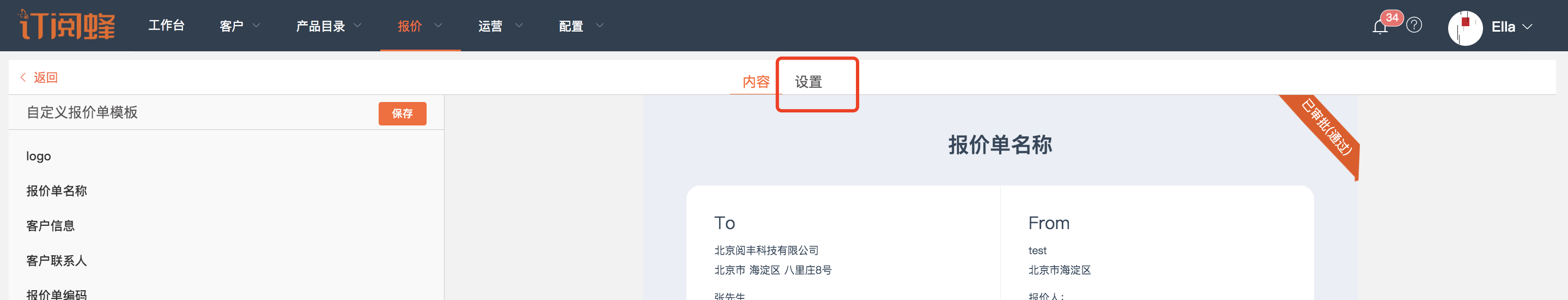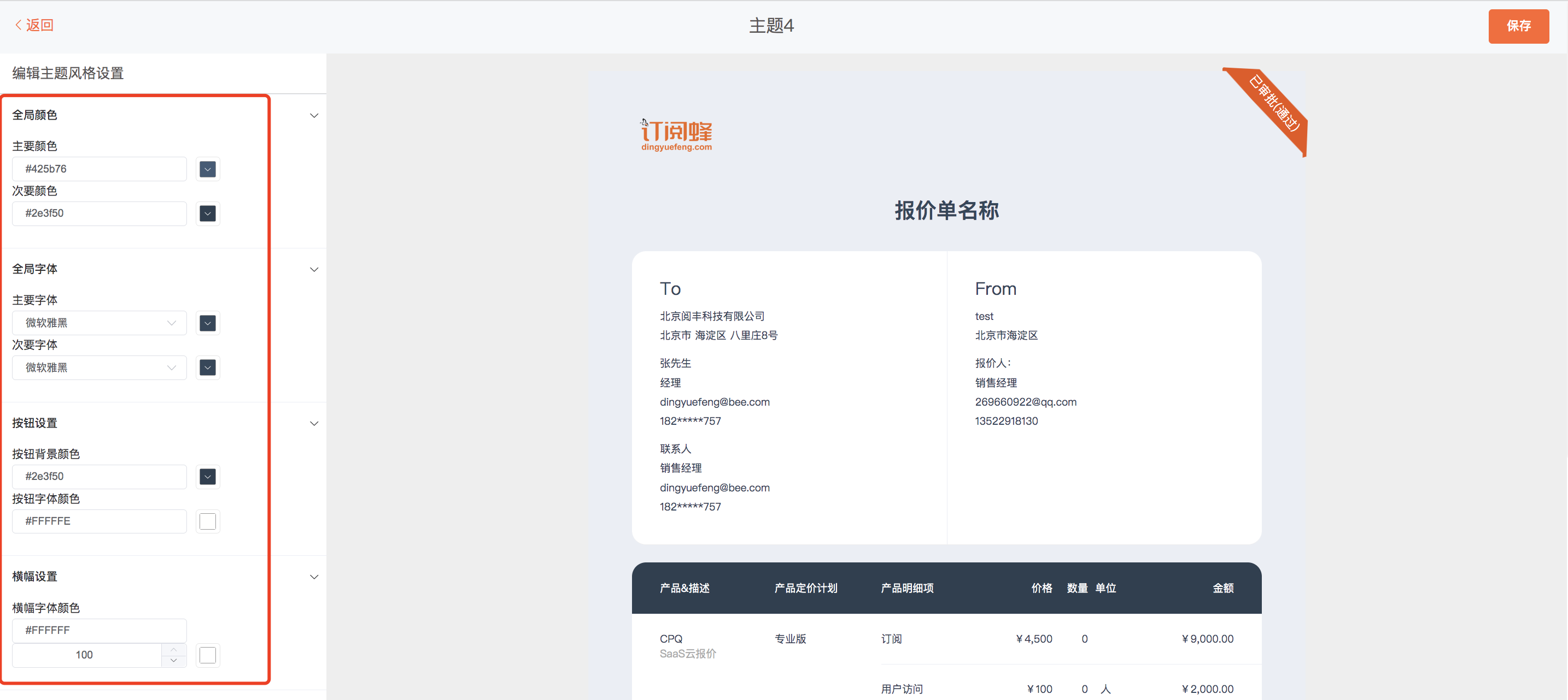 模版管理设置,是对报价单最终打印或发送PDF样式及显示内容设置;系统默认设置4种风格,可针对此风格进行配置定义.