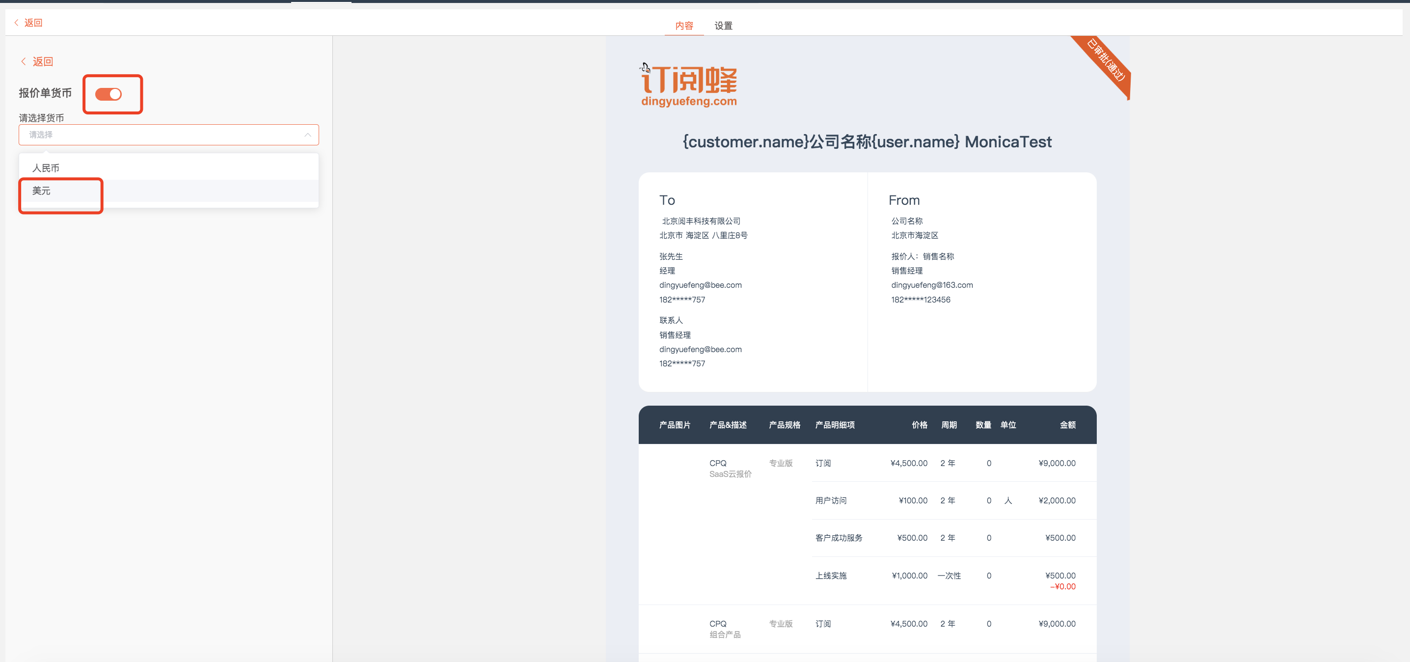 ⚠️ 开启了“I18n” 功能才能在报价单模版中进行币别转换