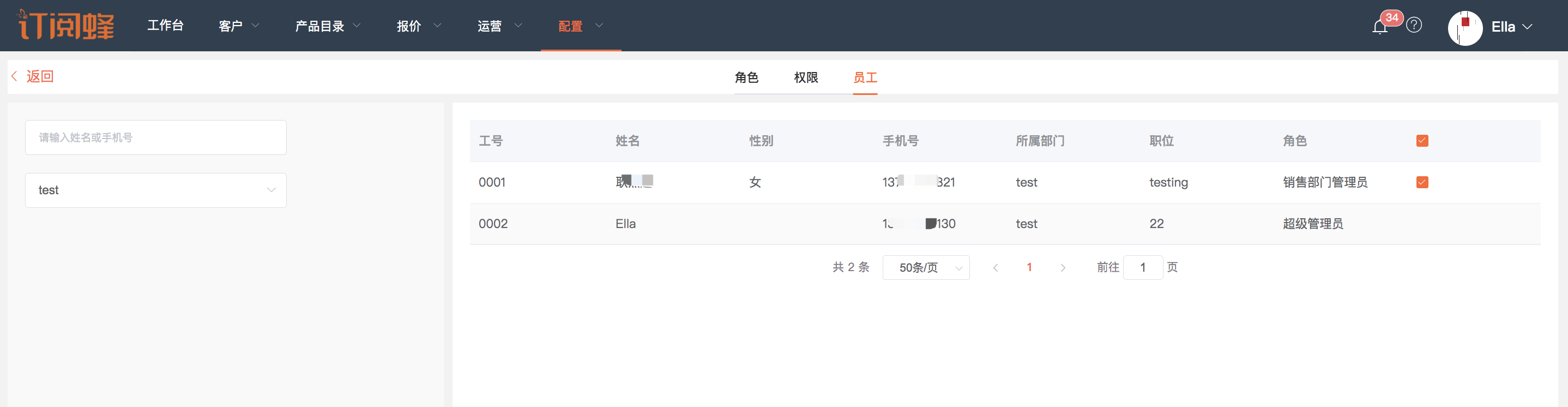 批量设置员工权限
